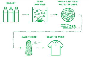 - Decreases greenhouse gas emissions from creating and processing virgin polyester