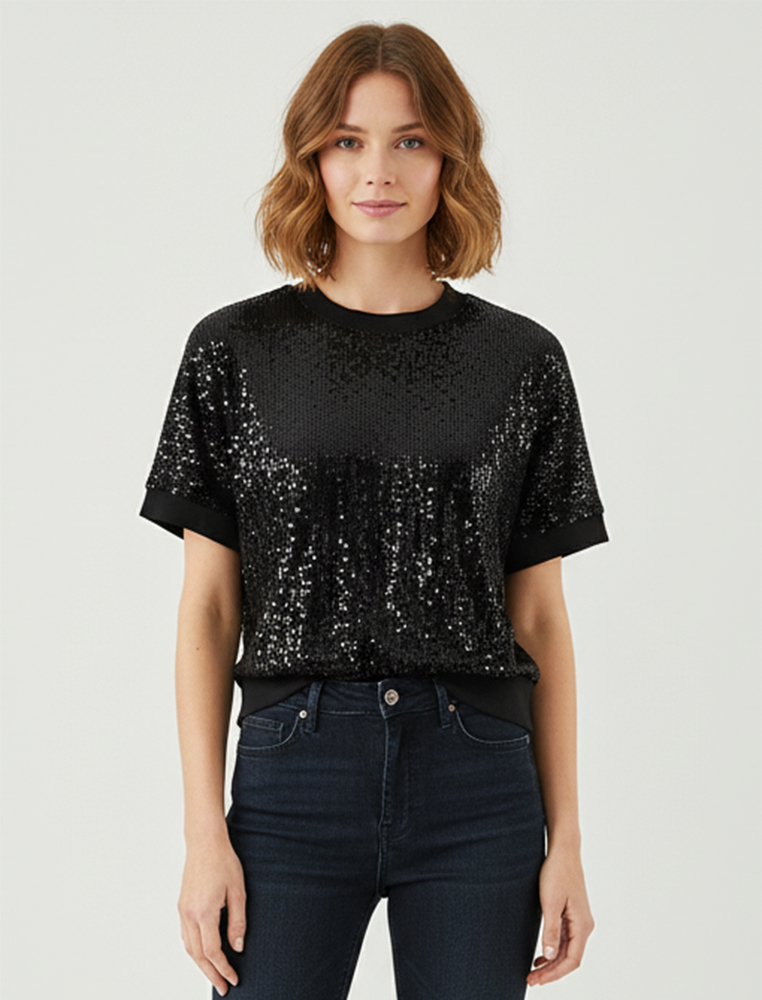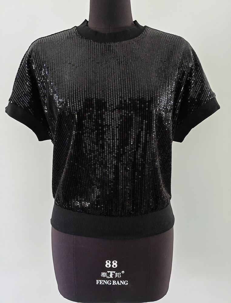 Description: This fashion top is made of sequins fabric, we have made this top with rib cuff at neck, sleeve and bottom. It is a very nice-looking and stylish top for you.