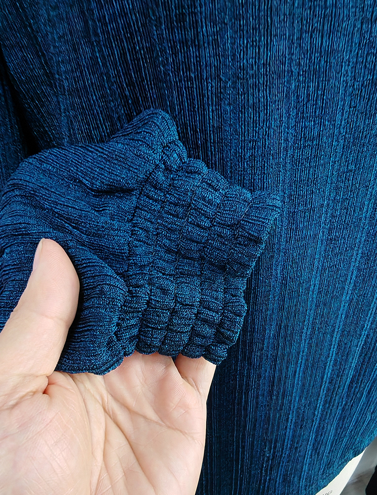 Description: This fashion blouse is made of structured melange rib, it has very unique outlook. We have made this blouse with smock at neckline and sleeve cuffs. It is a very nice looking and classical ladies fashion blouse for you.