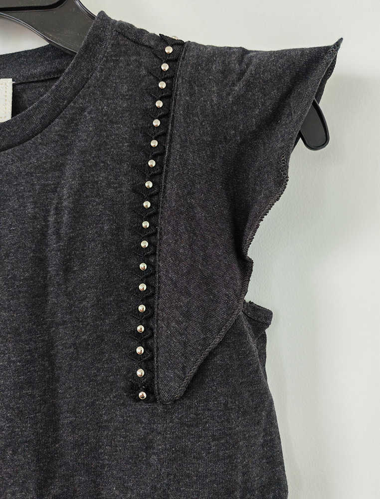 Description: This girl’s fashion T-shirt is made of nice cotton melange jersey fabric, we have made this T-shirt with fancy tapes at 2 sides, it is a very nice-looking and stylish T-shirt for you.