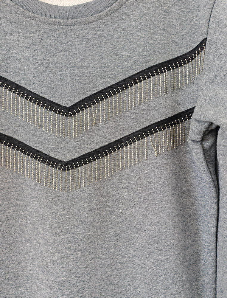 Description: This girl’s fashion hoodie is made of nice cvc terry fabric, we have made this T-shirt with double V-shape fancy tapes at front chest, it is a very nice-looking and stylish hoodie for you.