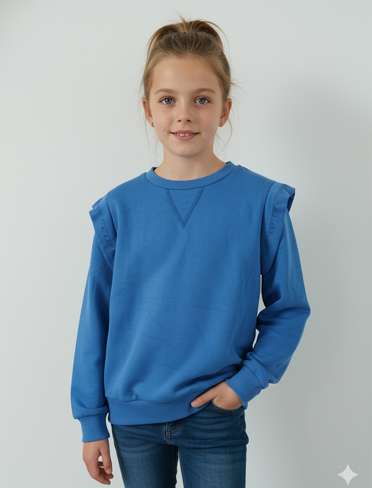 Description: This girl’s fashion hoodie is made of nice TR scuba fabric, we have made this T-shirt with V-shape sitiching at cf neck and embroidery logo at sleeve caps, it is a very nice-looking and stylish T-shirt for you.