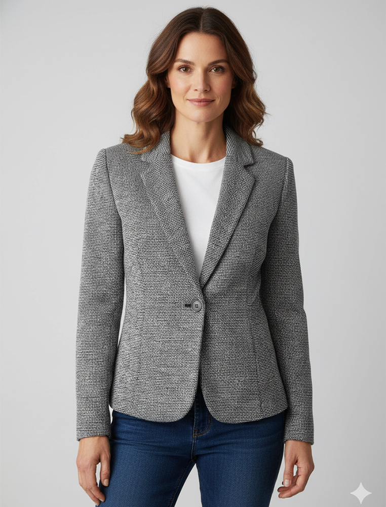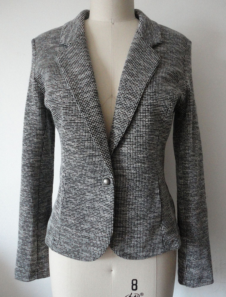 Item No. : TXC1059 Item Name: Ladies Knitted Blazer Composition: 57% Polyester 41%Cotton 2%Elastane Description: