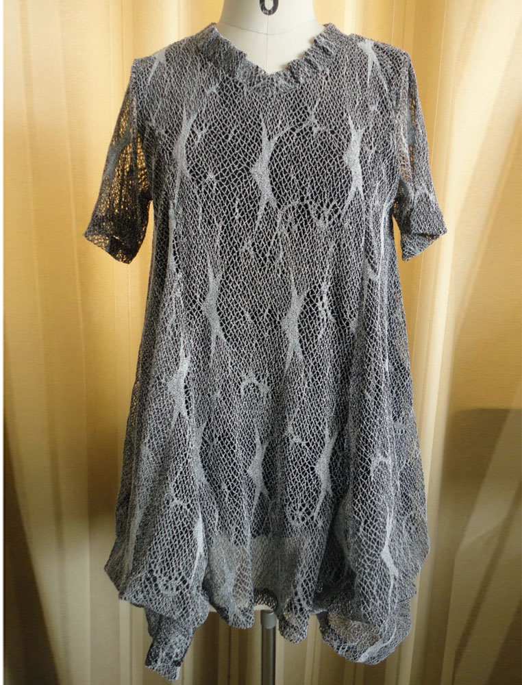 Description: This fashion dress is made of very special jacquard fabric, with bubble effect at bottom and five pointed star structured fabric, it is a fantastic causal dress for lady.